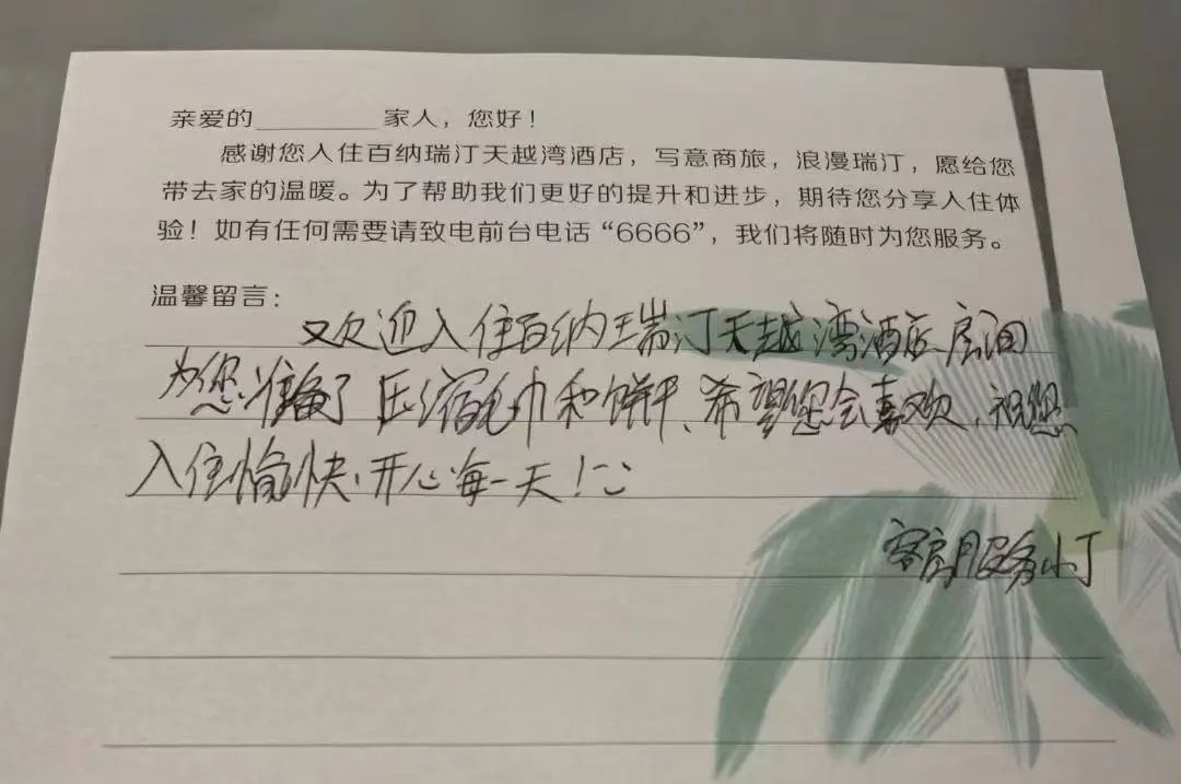 原本,歡迎水果是酒店體現(xiàn)服務(wù)的顯性產(chǎn)品。但當(dāng)這一動(dòng)作成為標(biāo)配后,常規(guī)的水果配置就不能為酒店加分了。就像很多高端酒店流行過(guò)手寫歡迎卡片,但我去年入住煙臺(tái)標(biāo)桿酒店時(shí),看到手寫卡片的字跡,瞬間對(duì)該酒店印象大打折扣。
