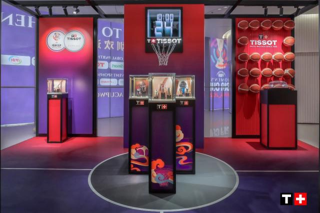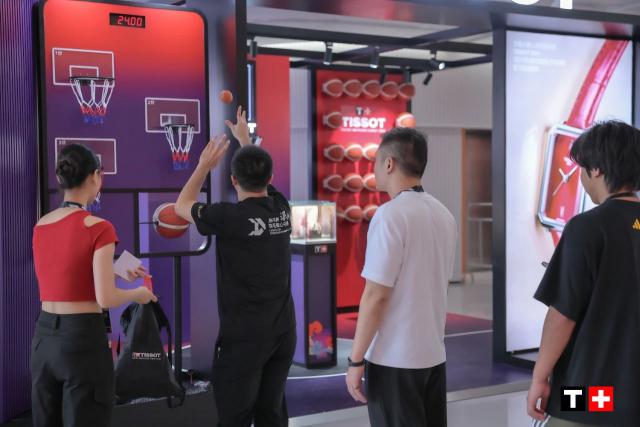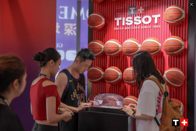 場館內(nèi)的天梭品牌展臺以“籃球”為主題,