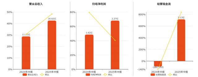 公司營業(yè)總收入達(dá)到16.62億元,歸母凈利潤為2.27億元,經(jīng)營活動(dòng)現(xiàn)金凈流入為2.13億元。