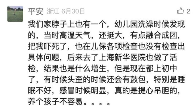 據(jù)樂樂媽媽回憶,一個(gè)月前,她給孩子洗澡擦脖子,孩子抬頭的瞬間,她看到脖子上有個(gè)小疙瘩。她趕緊伸手去摸,摸到一個(gè)小硬塊。