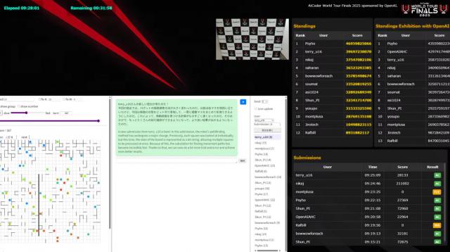 然而最近,傳來好消息:人類終于在人機大戰(zhàn)中贏過了AI!前兩天,在日本舉行的世界級編程大賽AtCoder世界巡回賽的一場決賽里,12位頂尖高手同時做一道編程題同臺競技,作為贊助商的OpenAI,也把他們的內(nèi)部模型拉進(jìn)了比賽。