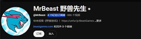 野獸先生在YouTube擁有4.15億粉絲,全平臺賬號粉絲約8億,比今年3月來中國的美國網(wǎng)紅“甲亢哥”IShowSpeed還要火。