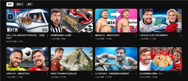 據(jù)了解,野獸先生的視頻內(nèi)容以“撒錢 + 挑戰(zhàn)”模式著稱,擅長打造視覺奇觀。