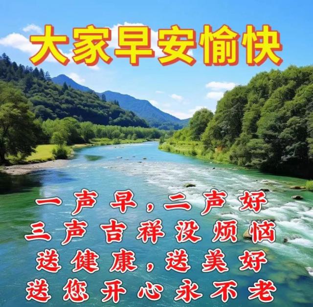 早安!清風(fēng)明月總是飽含深情,祝福一路隨行,白云深處寄托著我的牽掛,哪怕千山萬水也永遠(yuǎn)相隨。溫馨永遠(yuǎn)留存,牽掛連綿不斷,化作繞指的柔情。祝你清晨心情愉快,幸福如潺潺流水源源不斷。