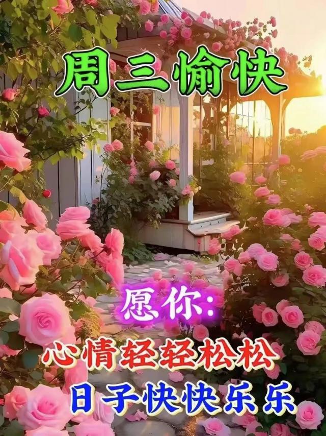 踏上幸福之路,越走越寬廣;點(diǎn)燃財(cái)源之火,越燒越旺盛;跳入快樂之海,越探索越廣闊;培植友誼之樹,越長(zhǎng)越青蔥。愿朋友你幸福長(zhǎng)久!星期三早安,愿你有美好的一天!
