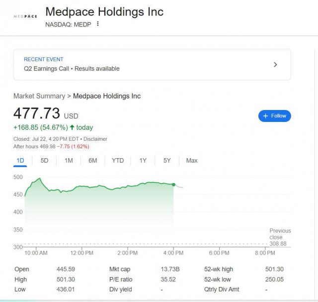Medpace二季度業(yè)績(jī)超預(yù)期,股價(jià)飆升近55%帶動(dòng)CRO概念股