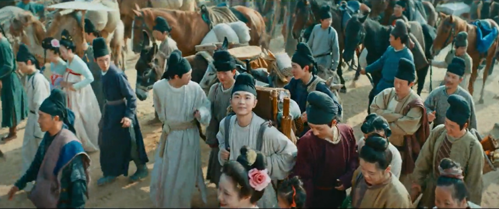 故事圍繞上林署小官李善德被迫承擔(dān)從嶺南轉(zhuǎn)運(yùn)荔枝到長安的“不可能任務(wù)”展開,他千辛萬苦完成轉(zhuǎn)運(yùn)后卻全家被流放嶺南。與劇版相比,影版刪去繁雜內(nèi)容,讓人物立場更清晰。開場二十分鐘就開始貴妃慶生倒計(jì)時(shí),影片過半時(shí),李善德已首次從嶺南回到長安,為后續(xù)重頭戲留出空間。劇情時(shí)長安排合理,遵循好萊塢商業(yè)片經(jīng)典的三幕式敘事節(jié)奏。