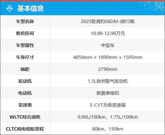 比亞迪海豹06DM - i旅行版共推出3款車(chē)型,售價(jià)10.98 - 12.98萬(wàn)元。新車(chē)定位中型旅行車(chē),外觀延續(xù)三廂版設(shè)計(jì),動(dòng)力搭載比亞迪第五代DM技術(shù)。同時(shí),官方還推出了美好無(wú)憂(yōu)禮、美好智聯(lián)禮、美好鉅惠禮、美好充電禮以及美好煥新禮購(gòu)車(chē)政策(詳情請(qǐng)咨詢(xún)當(dāng)?shù)亟?jīng)銷(xiāo)商)。