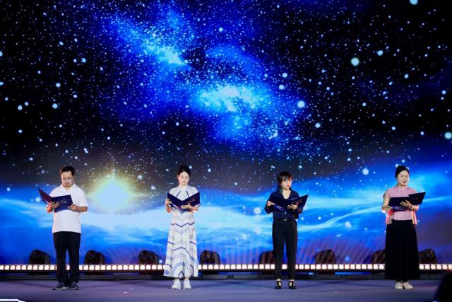 IP 之夜現(xiàn)場,還特別安排了一場深情的詩朗誦——由晨颯創(chuàng)作的《從指尖,到星野》。檸檬羽嫣、花清袂等作家走上舞臺,用溫潤而有力的聲音,將文字里的溫度與鋒芒緩緩道來。詩句中,有對時代脈搏的聆聽,有對文字力量的贊美,更有創(chuàng)作者們從筆耕不輟的“指尖”到心懷遠(yuǎn)方的“星野”的執(zhí)著跨越,讓在場觀眾深切感受到網(wǎng)絡(luò)文學(xué)與時代同頻、與夢想共振的獨特魅力。