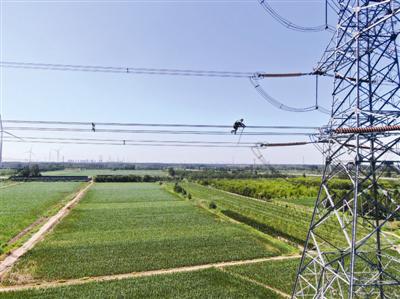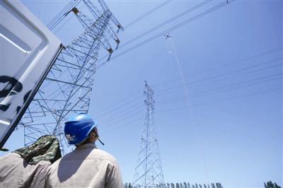 高壓輸電線不停電檢修,烈日下他們的臉被曬得黝黑。