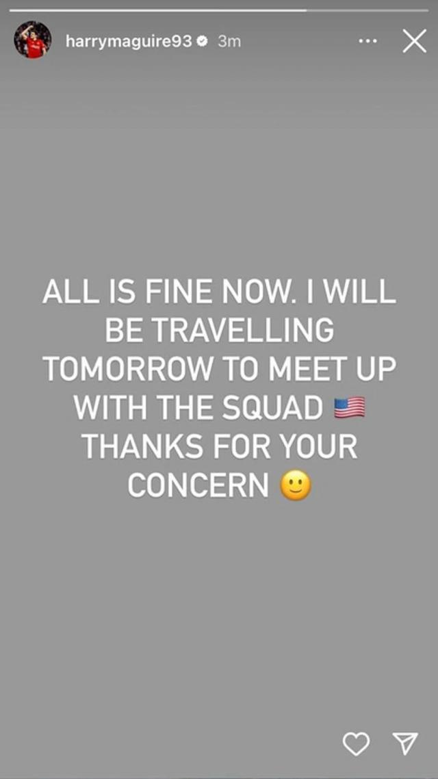 馬奎爾隨后在社媒發(fā)文稱:「現(xiàn)在一切都好。我明天將去旅行,與球隊會合,感謝你們的關(guān)心?!?/p>