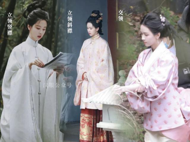 比如明風(fēng)漢服里常見的襖裙,其中交領(lǐng)襖裙最為普遍,根據(jù)領(lǐng)型還可分為立領(lǐng)、圓領(lǐng)等,它也是很多人入坑明制漢服的首選。有人說,平鋪好看,上身不一定好看;平鋪不好看,上身一定難看。所以負責的商家或買家為研究版型,會擺出平鋪圖,這樣更直觀。但在影視作品里,襖裙常常被改得“面目全非”。