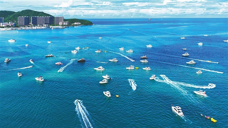 夏日的三亞灣,游艇在海面穿梭馳騁。