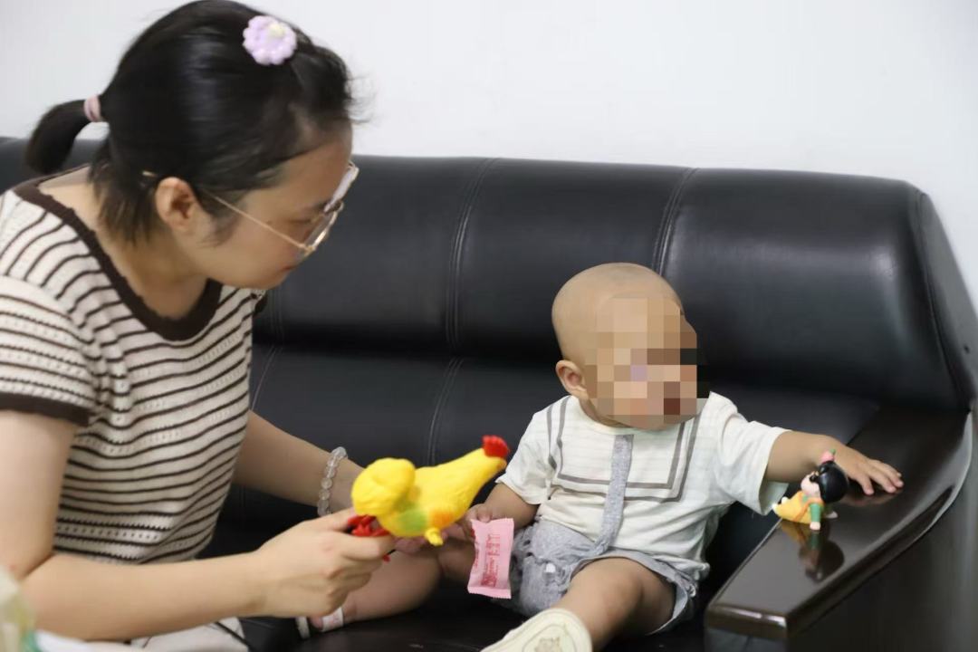 主審法官敏銳地察覺到這一情況,為了確保被告人情緒穩(wěn)定,保障庭審程序不受干擾,立刻做出了妥善安排。經(jīng)現(xiàn)場協(xié)調(diào),邀請法院審管辦主任羅微微同志在庭外臨時照看孩子。羅微微剛成為母親不久,她充分發(fā)揮年輕母親特有的細致與愛心,憑借日常的實際經(jīng)驗與同理心,很快把孩子帶到自己的辦公室,拿出小玩具和孩子互動玩耍,輕聲安撫孩子的情緒,還及時為孩子提供食物和飲水。在她溫情的陪伴與照料下,孩子的緊張情緒迅速緩解,從哭鬧變得平靜,最終在羅微微的守護下安然入睡。