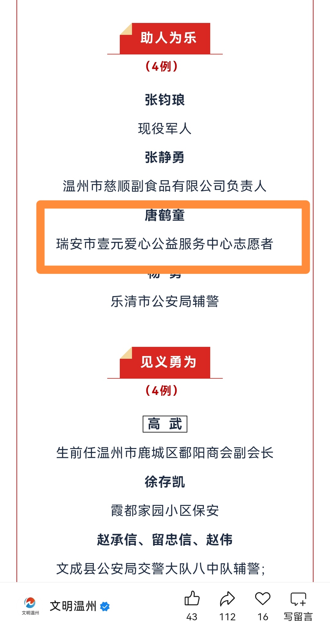 點贊!2025年二季度“溫州好人榜”公示,瑞安一人光榮上榜