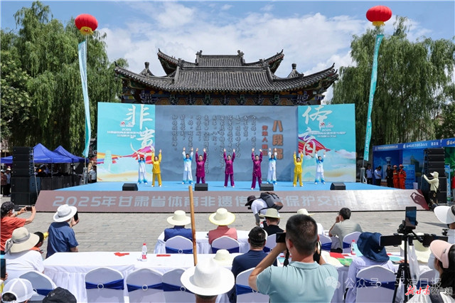 7月21日,2025年甘肅省非物質(zhì)文化遺產(chǎn)體育類展示大會在平?jīng)鍪嗅轻紖^(qū)崆峒古鎮(zhèn)拉開帷幕,本次大會以“尋遍地域非遺,暢游康養(yǎng)平?jīng)觥睘橹黝}。來自全省13個市(州)及蘭州新區(qū)的30多支代表隊,帶來了33項國家級、省級和市縣級非物質(zhì)文化遺產(chǎn)體育類項目進行展示。