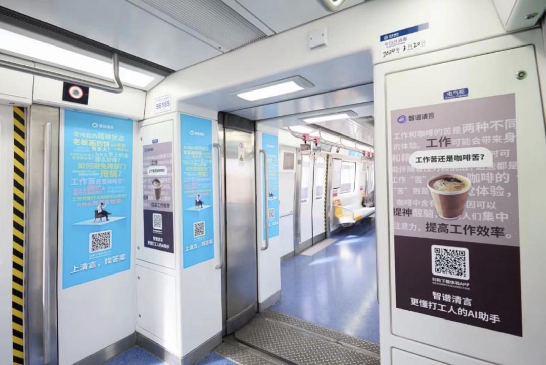 除了機場,智譜曾在北京中關(guān)村商圈附近投放了一圈廣告——這里也是Kimi、百川智能等其他六小龍的辦公所在地。兩家公司的員工走進地鐵就能看到智譜清言的大幅廣告,這被不少網(wǎng)友調(diào)侃為“貼臉開打”。