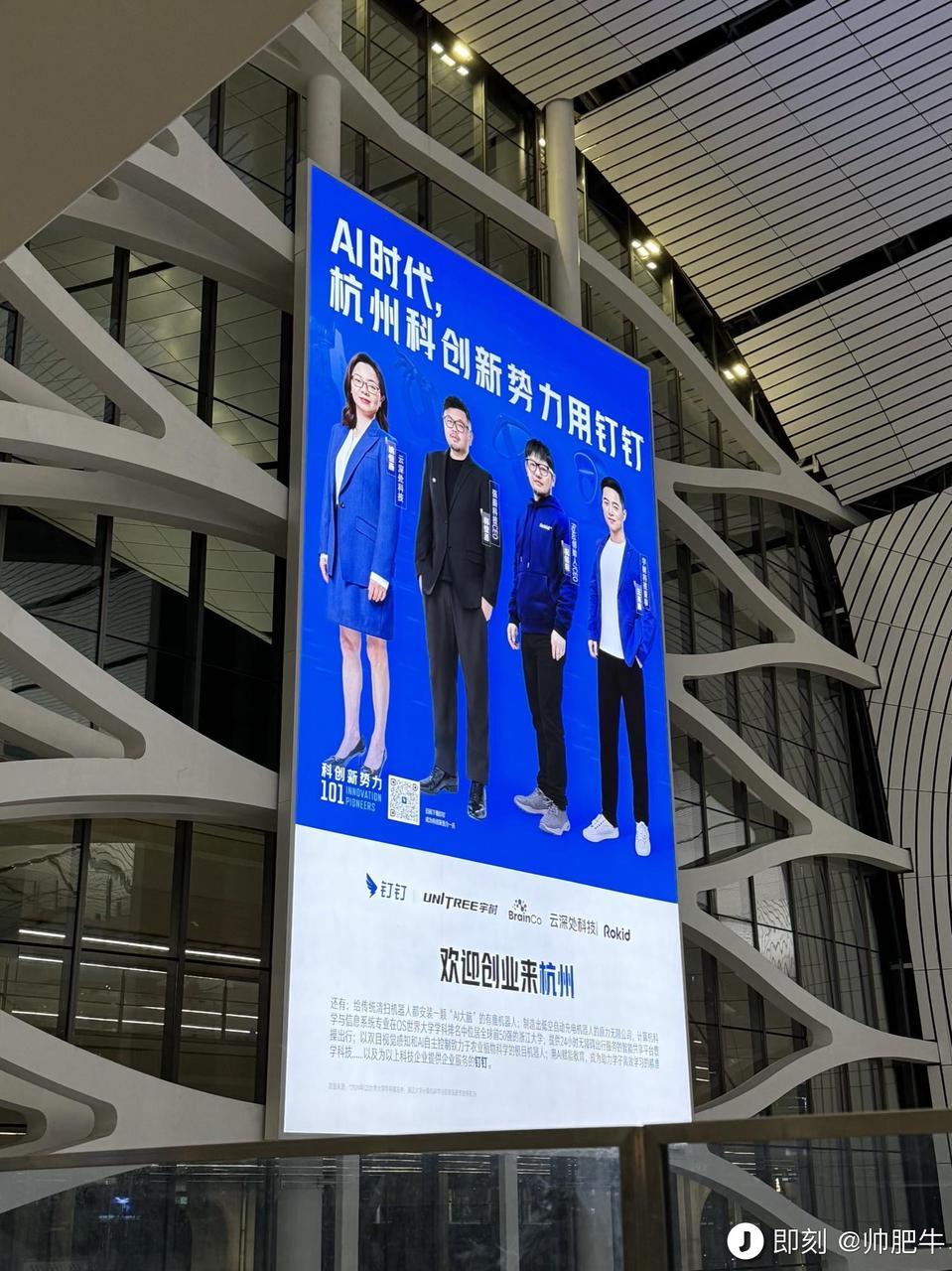 釘釘曾在北京首都機場投放廣告,標題緊跟AI熱點,寫著“AI時代……歡迎創(chuàng)業(yè)來杭州”。