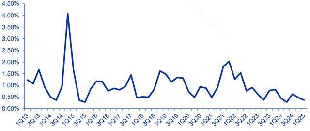 資金面上,近年來耐心資本長(zhǎng)期布局A股市場(chǎng),中央?yún)R金增持ETF、險(xiǎn)資權(quán)益投資比例上調(diào)等舉措,改善了增量資金的流動(dòng)性。同時(shí),機(jī)構(gòu)投資者對(duì)券商板塊低配修復(fù)空間較大。根據(jù)2025年一季度公募主動(dòng)權(quán)益基金重倉(cāng)股數(shù)據(jù),券商板塊持倉(cāng)占比不足0.5%,處于過去10年以來相對(duì)低位。目前權(quán)益資產(chǎn)吸引力提升,券商作為“高貝塔”板塊,受益明顯。這一趨勢(shì)有望進(jìn)一步帶動(dòng)經(jīng)紀(jì)、融資融券、股衍等業(yè)務(wù)全面回暖,打開估值修復(fù)空間。
