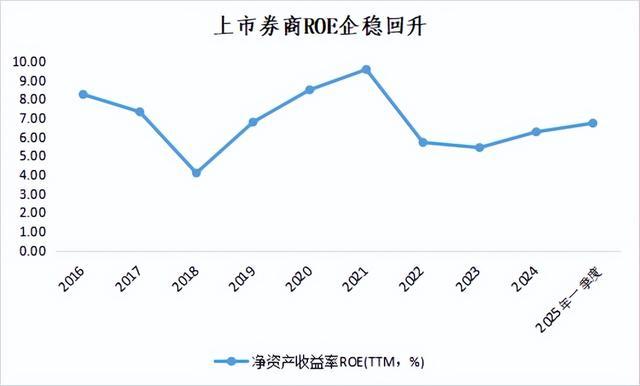 政策方面,近年持續(xù)鼓勵(lì)券商行業(yè)通過并購(gòu)重組變強(qiáng),加速行業(yè)資源整合,增強(qiáng)盈利能力,上市券商滾動(dòng)年化ROE已企穩(wěn)回升。數(shù)據(jù)顯示,上市券商滾動(dòng)年化ROE自2023年的5.45%提升至2024年的6.28%,2025年一季度進(jìn)一步升至6.74%,反映出行業(yè)在規(guī)模提升與效能優(yōu)化雙重驅(qū)動(dòng)下的質(zhì)量改善趨勢(shì)。與此同時(shí),近期發(fā)布的《證券公司分類評(píng)價(jià)規(guī)定》修訂稿明確提出“功能導(dǎo)向、差異化發(fā)展”的新方向,從制度上引導(dǎo)券商由規(guī)模競(jìng)賽轉(zhuǎn)向?qū)I(yè)化競(jìng)爭(zhēng),推動(dòng)形成更合理的行業(yè)梯隊(duì)結(jié)構(gòu)。