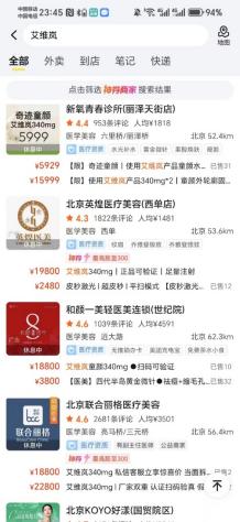 盡管新氧事后刪除了有爭(zhēng)議的聲明文章,但其價(jià)格策略未變。截至7月中旬,美團(tuán)等平臺(tái)顯示,“新氧青春診所”的艾維嵐相關(guān)項(xiàng)目仍維持在6000元區(qū)間。