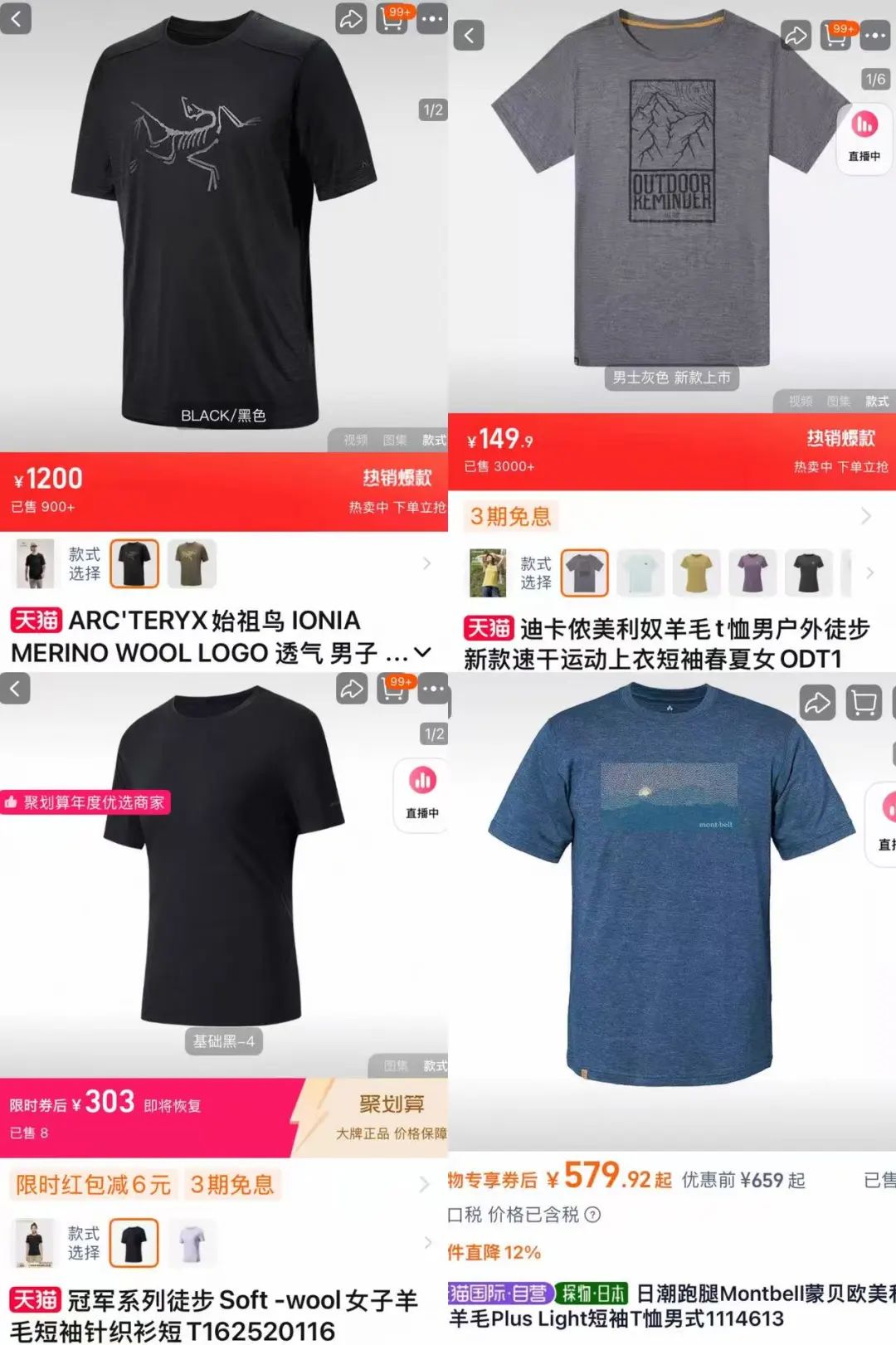非專業(yè)羊毛品牌也在布局。始祖鳥、montbell、迪卡儂、安踏等運(yùn)動(dòng)品牌天貓旗艦店都有羊毛短袖。迪卡儂的速干羊毛T恤已售出3000+件,montbell羊毛T恤熱門筆記互動(dòng)量超1600條。這股“反季節(jié)”羊毛風(fēng)潮在蔓延。