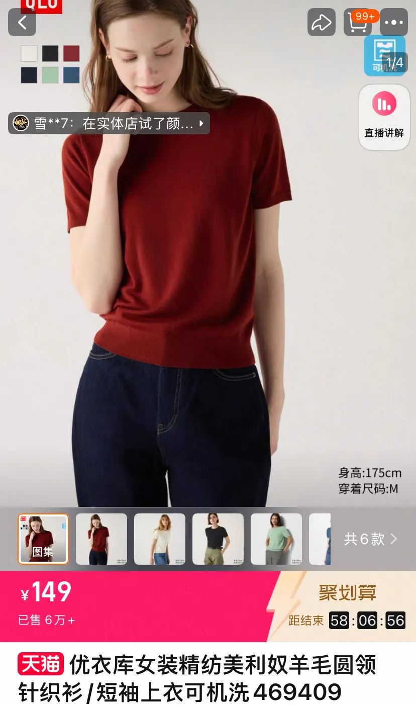 大眾市場(chǎng)上,優(yōu)衣庫(kù)以“100%高品質(zhì)美利奴羊毛”為賣點(diǎn)的短袖T恤,149元的價(jià)格斬獲6萬(wàn)+銷量。