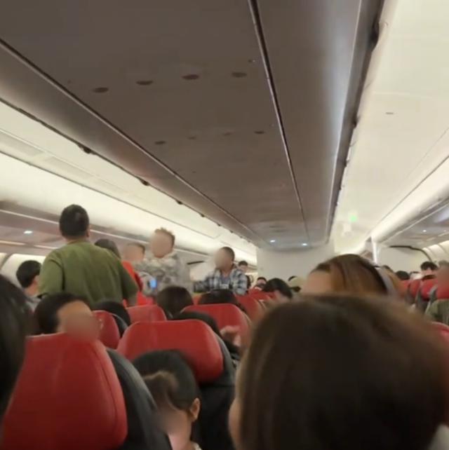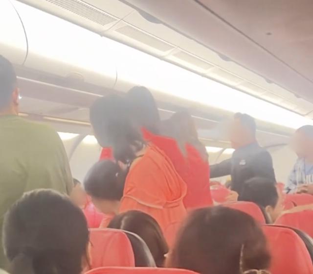 現(xiàn)場(chǎng)視頻顯示,沖突雙方疑是前后排的男性乘客,雙方不顧空乘人員和其他乘客勸阻,互相抓扯,大打出手。