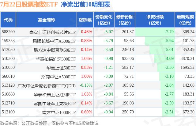與此同時,當日有498只股票指數(shù)ETF基金出現(xiàn)資金凈流出,其中凈流出排名首位的是嘉實上證科創(chuàng)板芯片ETF(588200),份額減少了5.07億份,凈流出額為7.79億元。