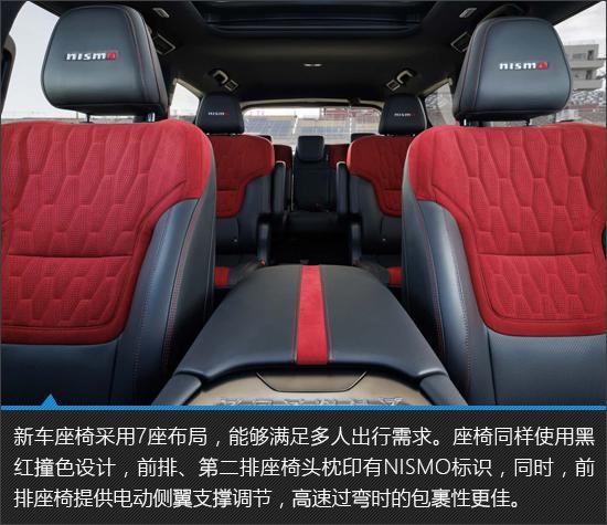 新車外觀氣場強大,參考常規(guī)版車型,長寬高分別為5308mm*2011mm*1948mm。全新的NISMO套件采用經(jīng)典的黑紅撞色設(shè)計,鋒利造型讓新車更具戰(zhàn)斗感,還能在高速行駛時提供更好的空氣動力學(xué)表現(xiàn)。