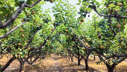 “翠冠”梨果實近圓形黃綠色,果肉雪白,汁豐味甜,風(fēng)味帶蜜香。等到 7 月底“早生新水”快要落市時,“翠冠”梨也將成熟,接上銷售檔口。