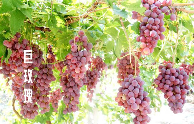 “巨玫瑰”7 月中下旬上市,果穗圓錐形,果粒大且整齊,平均粒重 9.5 - 12 克,果皮紫紅色,皮肉易分離,口感微酸帶甜,有濃郁的玫瑰香味。