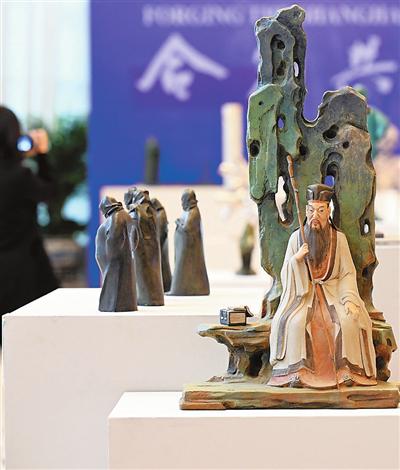 圖①、② “合光共塑”上合組織國家雕塑展展品。記者 胡凌云 攝