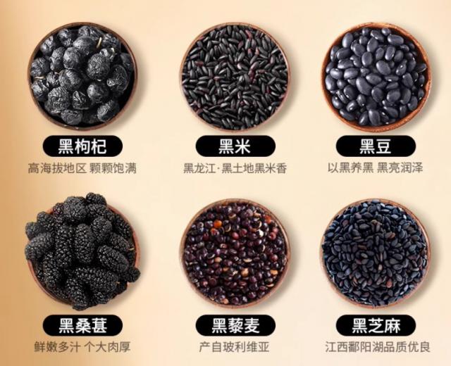 這款產(chǎn)品精選了黑芝麻、黑豆、黑米、黑枸杞、桑葚、黑藜麥六種黑色食材,搭配核桃、山藥、糙米、燕麥米、結(jié)晶果糖,形成營養(yǎng)豐富的滋補品。這些食材富含蛋白質(zhì)、維生素、礦物質(zhì)和膳食纖維,能健脾養(yǎng)胃、潤肺益氣。它通過先進加工工藝制成,不僅營養(yǎng)高,而且食用方便,適合各類人群。