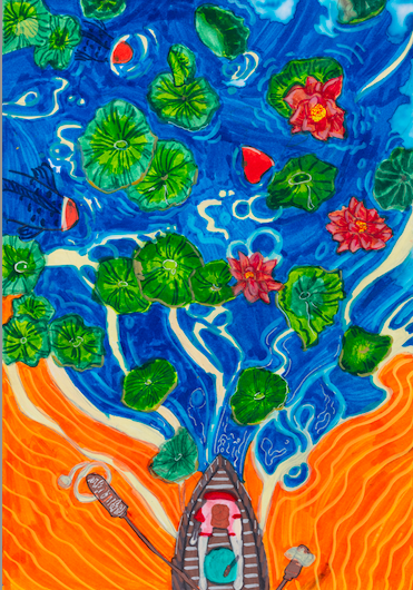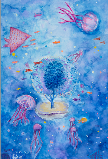 張藝蓓的《駛向何方》、姜卓然的《深海珊瑚樹》、汪依曼的《思考一個(gè)問題》,充滿了想象力,讓人仿佛置身于一場(chǎng)心靈之旅。