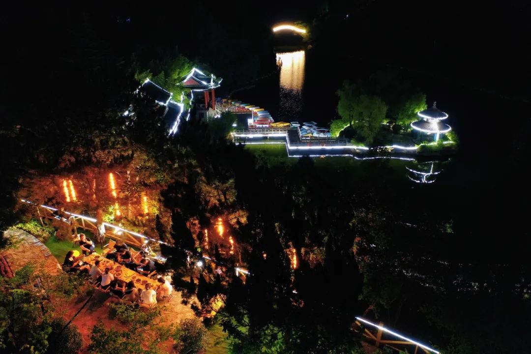 夜幕降臨,絢秋湖畔的波光與星空交相輝映。露營區(qū)為住宿家庭贈送一定數(shù)量的啤酒、醇厚咖啡及炭火烤串。游客還可以體驗休閑垂釣、手工DIY、天趣苑喂孔雀的樂趣,在親友的歡聲笑語中,盡享湖光山色的寧靜與美好,清風(fēng)徐來,煩憂皆消。