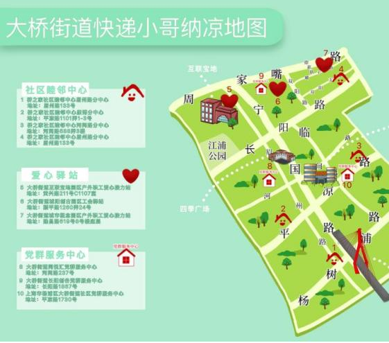 外賣(mài)騎手成為社區(qū)兒童關(guān)注的焦點(diǎn)。大橋街道兒童議事會(huì)的孩子們決定以自己的方式參與志愿服務(wù),他們走訪騎手、了解生活、總結(jié)需求,經(jīng)過(guò)一場(chǎng)真實(shí)的議題討論,決定親手為騎手繪制“納涼地圖”,將社區(qū)里能遮陽(yáng)、補(bǔ)水、歇腳的角落一一標(biāo)注出來(lái)。騎手節(jié)當(dāng)天,這份特殊的地圖作為禮物送到了小哥手中。從提出關(guān)心、組織討論,到親手繪制與派發(fā),孩子們完成了一次完整的志愿實(shí)踐,詮釋了“兒童不僅是被服務(wù)對(duì)象,也能成為城市志愿精神的參與者”。