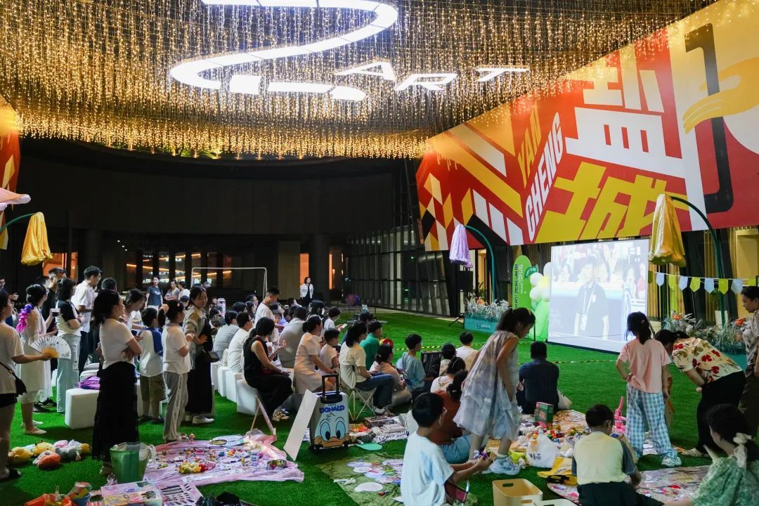 鹽城市美術(shù)館藝術(shù)街區(qū)內(nèi),大家一同觀看‘蘇超’比賽。