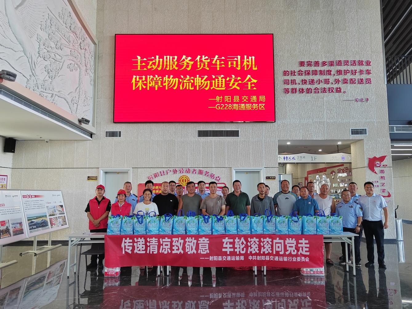 7月21日下午,射陽(yáng)縣交通運(yùn)輸行業(yè)黨委在G228海通服務(wù)區(qū)現(xiàn)場(chǎng),舉辦了“傳遞清涼致敬意,車輪滾滾向黨走”活動(dòng)。