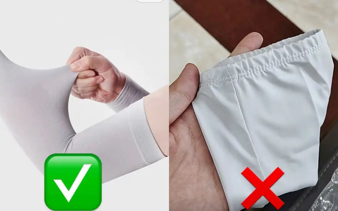 建議選擇在袖口、手腕處設(shè)計(jì)了加寬加厚高彈邊的冰袖,類似中筒襪那種。這種高彈袖邊不會有明顯勒感,防滑效果好,還能經(jīng)受住水洗日曬。