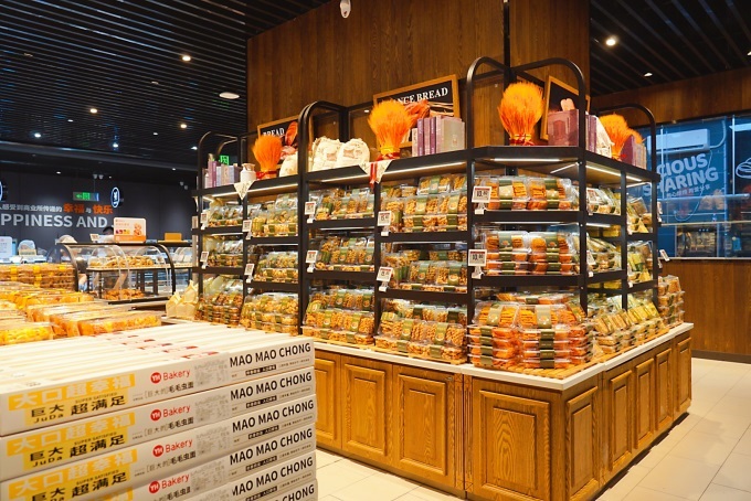 烘焙區(qū)推出了YHBakery明星產(chǎn)品系列,有外酥里嫩、芋泥與麻薯搭配香甜的芋泥麻薯大酥餅,杏仁醬焦香、黃芥末奶油夾心層次豐富的核桃滿滿面包,還有果肉飽滿、帶來(lái)視覺(jué)和味覺(jué)雙重享受的榴蓮千層蛋糕。
