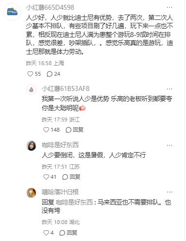 有游客表示:“昨天看沒太陽(yáng),臨時(shí)去樂高樂園,以為要排一小時(shí),結(jié)果所有項(xiàng)目都能直接玩,過山車想刷幾遍就刷幾遍,連餐飲都不用排隊(duì)?!币晃患议L(zhǎng)也說(shuō):“人少體驗(yàn)感太好了,比迪士尼那種人擠人的情況好太多,孩子玩得開心,大人也不累,就是票價(jià)太貴了。”還有人調(diào)侃:“第一次聽說(shuō)人少是優(yōu)勢(shì),樂高老板聽到都要夸你是大聰明。”