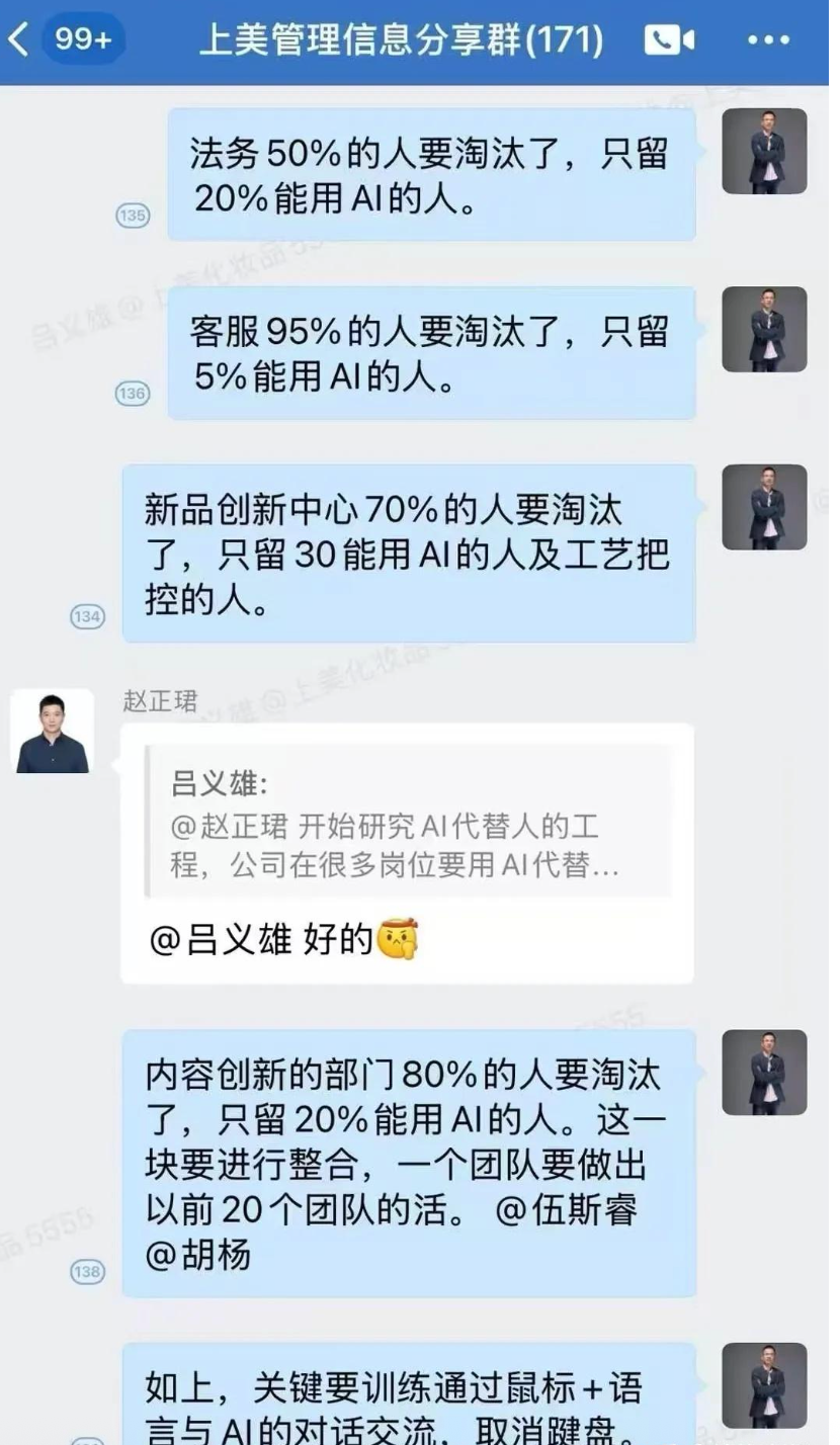 這不是呂義雄內(nèi)部發(fā)言第一次引發(fā)熱議。今年2月,他關(guān)于“人工智能時代員工轉(zhuǎn)型”的言論掀起波瀾。他提出對公司內(nèi)部進(jìn)行大規(guī)模調(diào)整,強(qiáng)調(diào)留下能使用人工智能的員工,客服部門裁員95%,僅留5%具備AI技能的人員。這番言論被外界解讀為大規(guī)模裁員的前兆,在社交媒體引發(fā)廣泛討論。