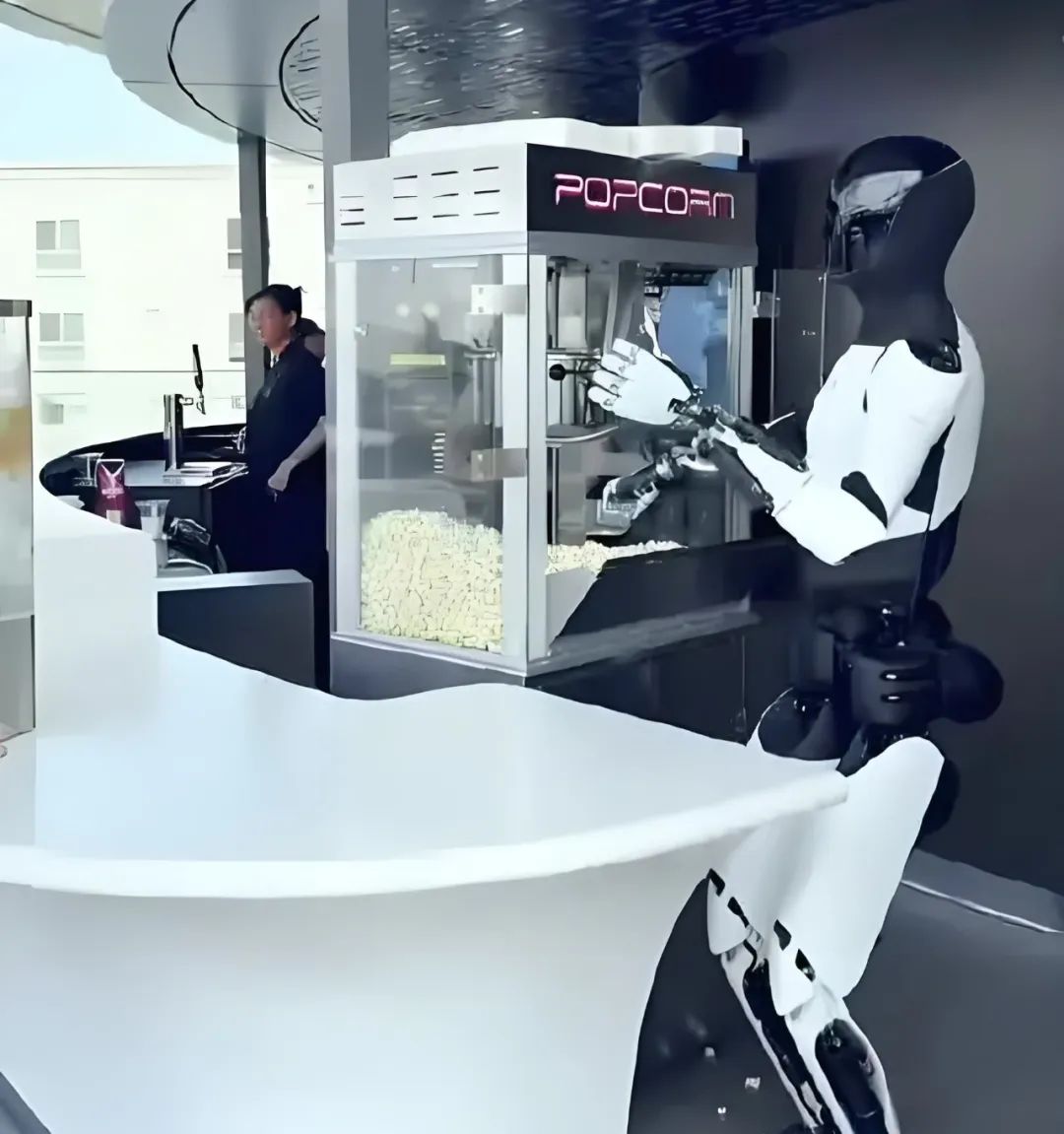 有位TikTok用戶(hù)還拍到驚險(xiǎn)一幕:Optimus手捧漢堡不慎滑倒,竟像跳機(jī)械舞般屈膝緩沖、穩(wěn)穩(wěn)起身,視頻播放量直接破千萬(wàn)。