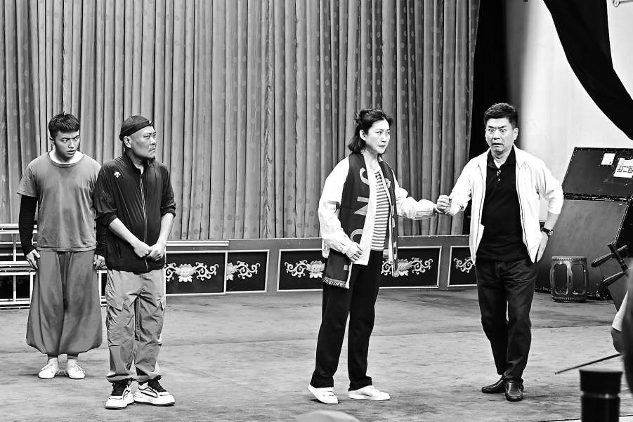 新編現(xiàn)代京劇《野火春風(fēng)斗古城》正在排練。北京劇院領(lǐng)銜主演、梅派名家張慧芳(左)飾演金環(huán)、銀環(huán),北京京劇院領(lǐng)銜主演、老生名家杜鎮(zhèn)杰(右)飾演關(guān)敬陶。北京晚報(bào)記者 金瑤 攝