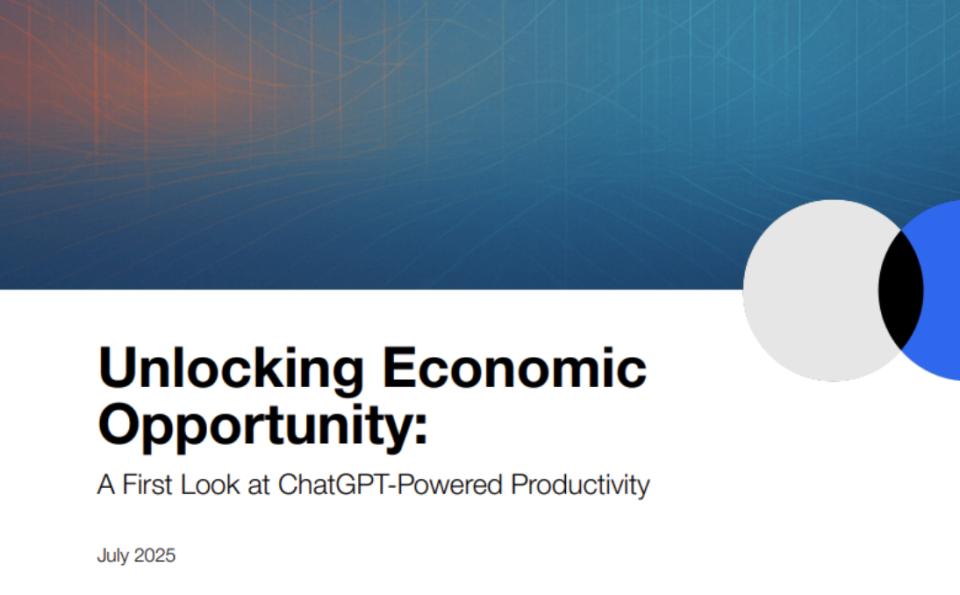 7月24日消息,OpenAI首席經(jīng)濟(jì)學(xué)家羅尼·查特吉(Ronnie Chatterji)領(lǐng)導(dǎo)的團(tuán)隊(duì),經(jīng)過(guò)長(zhǎng)達(dá)12個(gè)月追蹤,并基于海量ChatGPT用戶數(shù)據(jù),近日發(fā)布了名為《解鎖經(jīng)濟(jì)機(jī)會(huì)》(Unlocking Economic Opportunity)的深度報(bào)告,揭示了AI對(duì)經(jīng)濟(jì)增長(zhǎng)的巨大潛力。