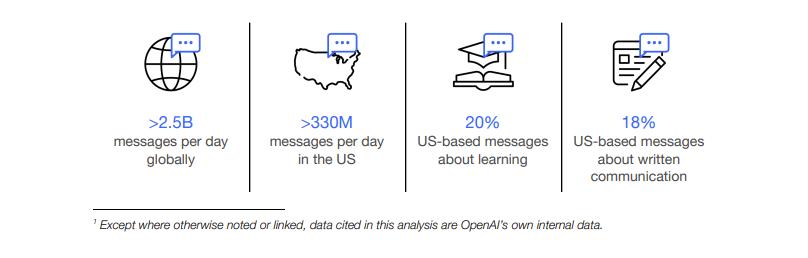 每天,全球用戶向ChatGPT發(fā)消息超25億條,美國(guó)用戶就貢獻(xiàn)3.3億條。如此龐大的互動(dòng)量,讓OpenAI能深入觀察AI對(duì)經(jīng)濟(jì)的真實(shí)影響。