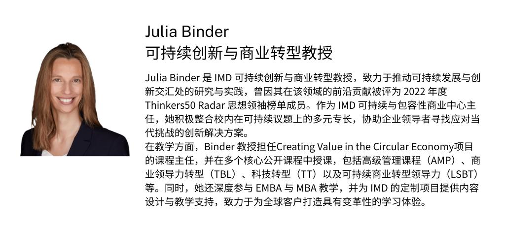瑞士IMD國際管理發(fā)展學(xué)院(International Institute for Management Development,IMD)有75年以上歷史,致力于培養(yǎng)推動世界繁榮、可持續(xù)與包容的領(lǐng)導(dǎo)者與組織。IMD由專業(yè)多元化教師隊伍領(lǐng)導(dǎo),在瑞士洛桑和新加坡設(shè)有校區(qū),在中國深圳設(shè)有管理發(fā)展中心,是全球個人和組織信賴的學(xué)習(xí)伙伴。IMD的高管教育和學(xué)位項目位居全球領(lǐng)先,源于“真實(shí)學(xué)習(xí),真實(shí)影響(Real Learning, Real Impact)”教育理念。通過高管教育課程、MBA、EMBA項目及專業(yè)咨詢服務(wù),助力商業(yè)領(lǐng)袖找到解決方案,挑戰(zhàn)現(xiàn)狀,啟迪未來。