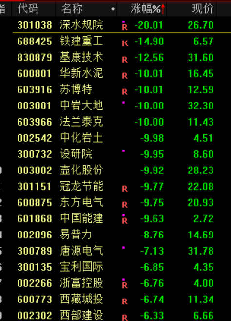 下跌方面,雅江電站概念股集體調(diào)整,深水規(guī)院、華新水泥等多股跌停。