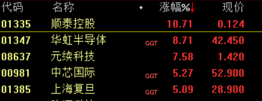 港股半導體板塊走勢強勁,華虹半導體漲幅超8%,中芯國際、上海復旦漲幅逾5%。